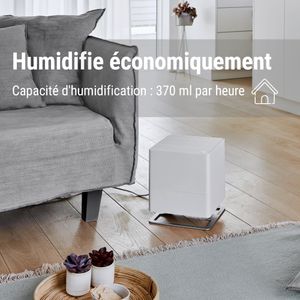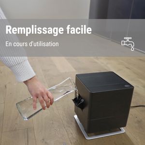 Inclus dans la livraison : l’appareil, un cube d’eau et deux cassettes d’évaporateur. Les retours utilisateurs varient : certains soulignent son efficacité sur 4 ans d’usage, tandis que d’autres pointent des limites dans les grands espaces ou le coût récurrent des filtres. À considérer selon vos priorités – simplicité d’usage ou performance intensive.