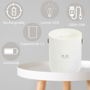 Humidificateur d'air ultra-silencieux avec capacité de 1,1L, parfait pour chambre d'enfant, bureau ou petits espaces.