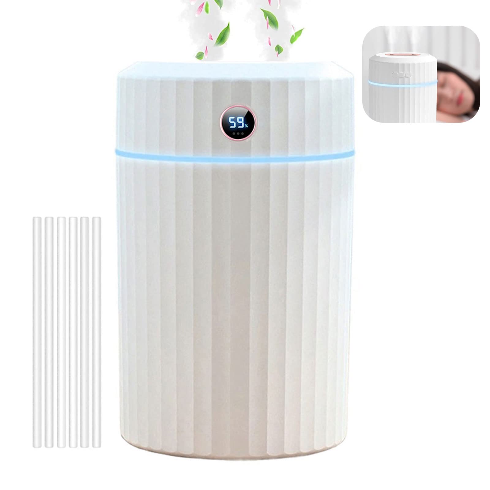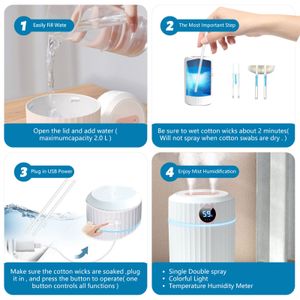 L’appareil affiche température et humidité ambiantes en temps réel via un écran intégré. Vous pouvez ajuster les réglages manuellement, avec deux options de diffusion. Pour la première utilisation, pensez à tremper la mèche en coton deux minutes – une étape cruciale pour activer la pulvérisation.