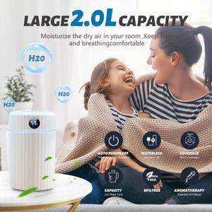 Humidificateur ultrasonique silencieux avec capacité de 2L, idéal pour améliorer la qualité de l'air intérieur avec arrêt automatique et lumière d'ambiance.