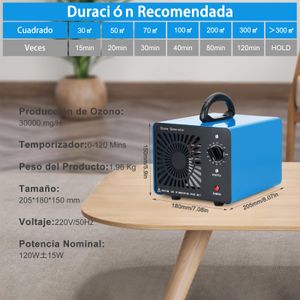 Le générateur d’ozone GMGXX propose une capacité de production de 30 000 mg/h, adaptée pour traiter des espaces jusqu’à 300 m². Son système convertit l’ozone en oxygène après purification, limitant les résidus. Vous pouvez régler la minuterie sur 120 minutes selon la taille de la pièce ou l’intensité des odeurs – pratique pour les maisons, les voitures ou les bureaux.