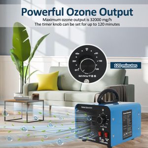 Doté d’une capacité de 32 000 mg/h, ce générateur d’ozone propose deux modes distincts : purification de l’air et traitement de l’eau. Idéal pour les espaces de 50 m² environ, il s’adapte aux besoins domestiques ou professionnels (bureaux, hôtels, garages). Le mode air cible les odeurs persistantes – fumée, moisissure, animaux – tandis que le mode eau stérilise fruits, légumes et liquides.