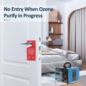 Un panneau d’avertissement inclus rappelle les consignes essentielles : évitez toute présence dans la pièce pendant le fonctionnement et aérez 30 à 60 minutes après. Le minuteur mécanique (jusqu’à 120 min) permet de programmer la durée, mais son réglage nécessite un peu d’habileté. Une fois lancé, l’appareil s’éteint automatiquement, et ses ventilateurs diffusent l’ozone rapidement.
