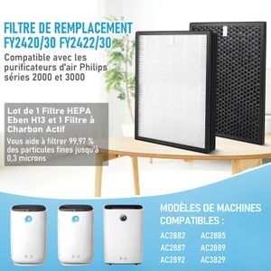 Filtre de remplacement pour purificateurs d'air Philips 2000 et 3000, incluant un filtre HEPA et à charbon actif pour améliorer la qualité de l'air intérieur.