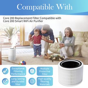 Lot de 2 filtres d'air de remplacement pour LEVOIT Core 200S, offrant une filtration 3 en 1 avec HEPA véritable et charbon actif.